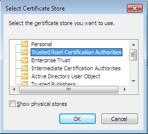 - Выбрать доверенные корневые центры сертификации Trusted Root Certification Authorities и нажать на кнопку OK: